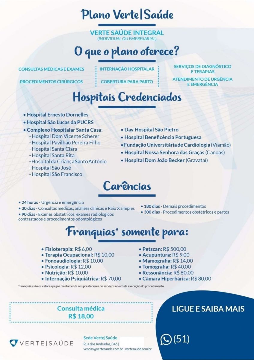VERTE é um plano cujo atendimento abrange Porto Alegre e região metropolitana.